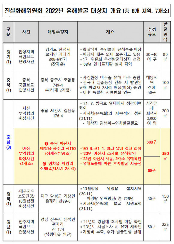 1±â Áø½ÇÈÇØÀ§¿øÈ¸ÀÇ ¡®Çѱ¹ÀüÀï ÀüÈÄ ¹Î°£ÀÎ Áý´ÜÈñ»ý °ü·Ã À¯ÇظÅÀå ÃßÁ¤Áö Á¶»ç¡¯(2006~2007³â) ÀÌÈÄ ÇØ´ç Á¶»çÁöÀÇ Çö»ó º¯°æ ¹× ¹ß±¼°¡´É ÇöȲ, 1±â Á¾·á ÀÌÈÄ Ãß°¡ ¼öÁýµÈ À¯ÇظÅÀå ÃßÁ¤Áö¿¡ ´ëÇÑ ½ÇÅÂÁ¶»ç Çʿ伺ÀÌ Á¦±âµÆ´Ù.