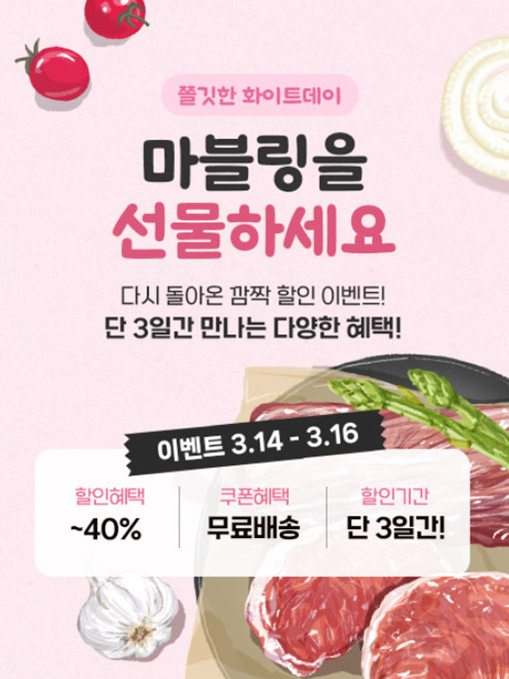 À̹ø ±âȹÀüÀº ¼ÒºñÀÚµéÀÇ Àå¹Ù±¸´Ï ´ëÇ¥ ǰ¸ñÀ¸·Î »ç¶û¹Þ´Â 1µî±Þ ÇÑ¿ì µî½É°ú Çѵ· »ï°ã»ìÀ» ¾à 40% ÇÒÀÎµÈ °¡°ÝÀ¸·Î ÇÑÁ¤¼ö·® ÆÇ¸ÅÇÏ°í ¹«·á¹è¼Û ÄíÆùÀ» Áö±ÞÇÏ´Â µî ÆÄ°ÝÀûÀÎ ÇýÅÃÀÌ Á¦°øµÈ´Ù.
