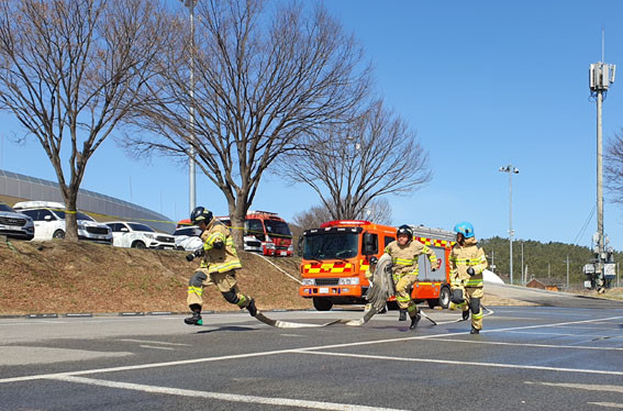 °æ¿¬Àº ÁöÈÖ°üÀ» Æ÷ÇÔÇÑ 6¸íÀÌ 1ÆÀÀÌ µÇ¾î ¼Ò¹æÂ÷·ÎºÎÅÍ ¼Ò¹æÈ£½º¸¦ ¿¬°áÇØ ºü¸£°í Á¤È®ÇÏ°Ô 2°³ÀÇ Ç¥ÀûÀ» ¸ÂÃç ³Ñ¾î¶ß¸®´Â µ¥±îÁö °É¸®´Â ½Ã°£À» ÃøÁ¤ÇØ °¡Àå ±â·ÏÀÌ ÁÁÀº ÆÀÀÌ ÃÖÁ¾ ½Â¸®ÇÏ´Â ¹æ½ÄÀ¸·Î ÁøÇàÇß´Ù.