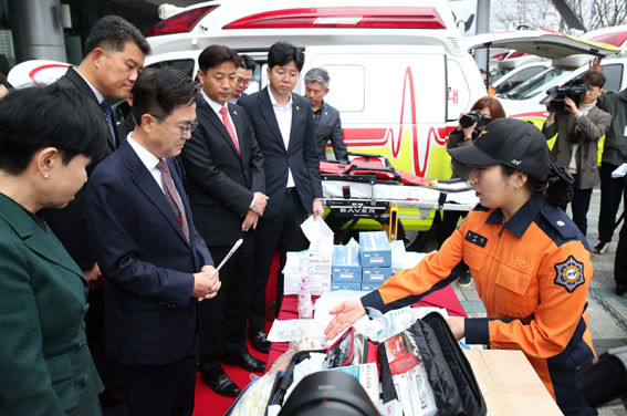 ¶Ç µé°Í°ú »ê¼ÒÈ£Èí±â, °æÃߺ¸È£´ë, °¨¿°º´ ¹æÁö º¸È£º¹, ¼Òµ¶¿ë ¿¡Åº¿Ã, ¼ö¾× ¼¼Æ® µî 54Á¾ 120Á¡ÀÇ Àåºñµµ °¢ ±¸±ÞÂ÷¿¡ ÀûÀçÇØ ¶ó¿À½º µµÂø Áï½Ã ÇöÀå¿¡ ÅõÀÔÇÒ ¼ö ÀÖµµ·Ï Çß´Ù.