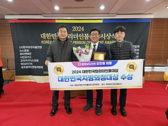 Ãæ³²µµÀÇȸ ¿ÀÀÎö ÀÇ¿ø(õ¾È7¡¤´õºÒ¾î¹ÎÁÖ)Àº 24ÀÏ Çѱ¹ÇÁ·¹½º¼¾ÅÍ¿¡¼ ¿¸° ¡®2024 ´ëÇѹα¹Å¾¸®´õÀι°´ë»ó ½Ã»ó½Ä¡¯¿¡¼ ´ëÇѹα¹Áö¹æÀÇÁ¤´ë»óÀ» ¼ö»ó, ÀÌ °°Àº ¼ö»ó ¼Ò°¨À» ÀüÇß´Ù.