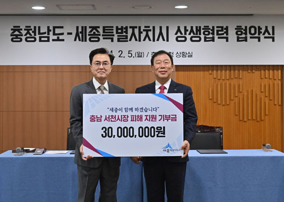 ±èÅÂÈì Áö»ç¿Í ÃÖ¹ÎÈ£ ½ÃÀåÀº 2¿ù 5ÀÏ µµÃ» »óȲ½Ç¿¡¼ ¼ÃµÆ¯È½ÃÀå ÈÀ纹±¸ ¼º±ÝÀü´Þ½Ä¿¡ ÀÌ¾î ¡®Ãæ³²?¼¼Á¾ »ó»ý Çù·Â ¾÷¹«Çù¾à¡¯À» ü°áÇß´Ù.