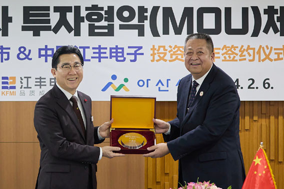 ¹Ú°æ±Í ½ÃÀåÀº 2¿ù 6ÀÏ Ãæ³²µµÃ» »óȲ½Ç¿¡¼ ±èÅÂÈì µµÁö»ç, Áß±¹ °Ç³ÀüÀÚ ¾ç½¦Â¼ ÃѰ渮¿Í ÅõÀÚ¾çÇØ°¢¼(MOU)¸¦ ü°áÇß´Ù.