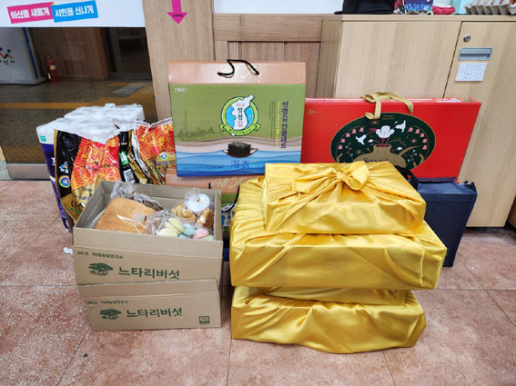 ¿ÃÇØµµ ½Ò20kg 2Æ÷, ÈÀåÁö 2ÆÑ, õÇýÇâ 2»óÀÚ, ¹è¼±¹°¼¼Æ® 2»óÀÚ, ±è ¼±¹°¼¼Æ® 2»óÀÚ, ¼±¹°¼¼Æ® 4»óÀÚ, »§ 8Á¾·ù µî ÈÄ¿ø¹°Ç°À» Á÷Á¢ ÁغñÇØ Àü´ÞÀ» ºÎŹÇß´Ù.