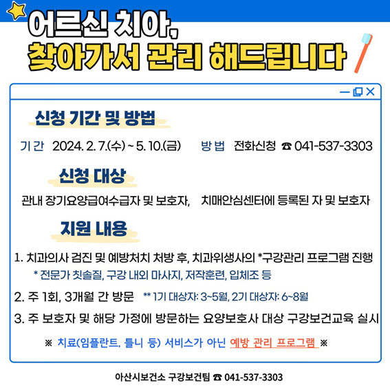 ¾Æ»ê½Ãº¸°Ç¼Ò(¼ÒÀå À嵿¹Î) ±¸°º¸°Ç¼¾ÅÍ´Â Ãë¾à°èÃþ ¾î¸£½ÅÀ» ´ë»óÀ¸·Î 3¿ùºÎÅÍ ¿¹¹æÀ» ÁßÁ¡À¸·Î ÇÑ ±¸° °ü¸® ÇÁ·Î±×·¥À» ¿î¿µÇÑ´Ù.