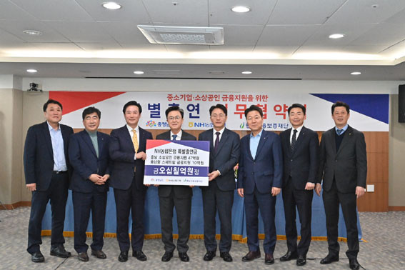 µµ´Â 2¿ù 21ÀÏ µµÃ» »óȲ½Ç¿¡¼ ±èÅÂÈì Áö»ç¿Í À̼®¿ë NH³óÇùÀºÇàÀå, ¹é³²¼º NH³óÇùÁß¾Óȸ Ãæ³²¼¼Á¾º»ºÎÀå, ¹ÚÀå¼ø NH³óÇùÀºÇà Ãæ³²º»ºÎÀå, ±èµÎÁß Ãæ³²½Å¿ëº¸ÁõÀç´Ü ÀÌ»çÀåÀÌ ¡®Áß¼Ò±â¾÷¡¤¼Ò»ó°øÀÎ ±ÝÀ¶ Áö¿øÀ» À§ÇÑ Æ¯º°Ã⿬ ¾÷¹«Çù¾à¡¯À» ü°áÇß´Ù°í ¹àÇû´Ù.