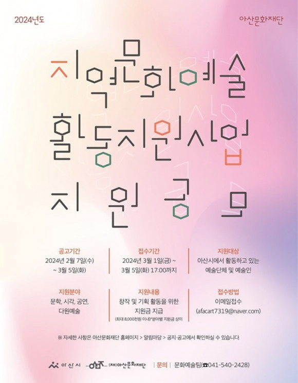 ¡®2024 Áö¿ª¹®È¿¹¼ú Ȱµ¿Áö¿ø»ç¾÷¡¯ 3¿ù 5ÀϱîÁö °ø¸ð Á¢¼ö