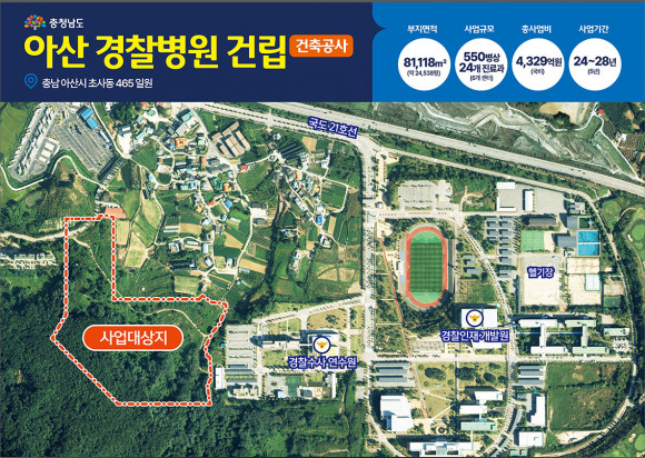 ¾Æ»ê °æÂûº´¿øÀº ¾Æ»ê½Ã Ãʻ絿 ÀÏ¿ø 8¸¸ 1õ118§³¿¡ 6°³ ¼¾ÅÍ, 24°³ Áø·á°ú, 550º´»ó ±Ô¸ð·Î °Ç¸³Çϸç, ÃÑ»ç¾÷ºñ 4õ329¾ï ¿øÀ» ÅõÀÔÇÒ °èȹÀÌ´Ù.
