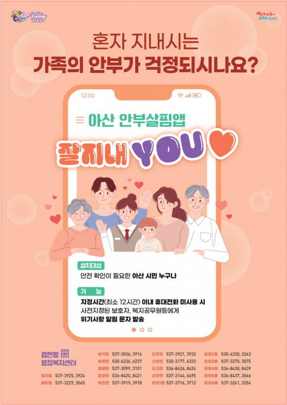 ¾Æ»ê½Ã(½ÃÀå ¹Ú°æ±Í)´Â ¸Å³â ´Ã¾î³ª´Â 1ÀÎ °¡±¸ÀÇ ¾ÈÀü È®ÀÎÀ» À§ÇØ ¾Æ»ê ¾ÈºÎ»ìÇË¾Û ¡®ÀßÁö³»YOU¢¾¡¯¸¦ ¿î¿µÇÑ´Ù.