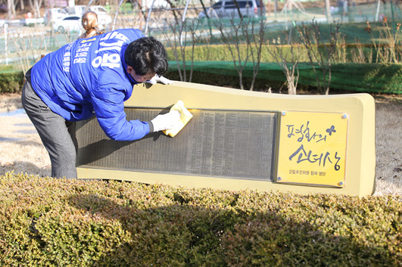 ½ÅÁ¤È£ ÆòÈÀÇ ¼Ò³à»óÀº º¹±â¿Õ È帰¡ ¾Æ»ê½ÃÀåÀ¸·Î ÀçÀÓÇß´ø Áö³ 2016³â ¡®ÆòÈÀÇ ¼Ò³à»ó ¾Æ»ê°Ç¸³ ÃßÁøÀ§¿øÈ¸¡¯µî ½Ã¹Îµé°ú ÇÔ²² ÀϺ»±º À§¾ÈºÎ ÇÇÇØÀÚÀÇ ½Ç»óÀ» ¾Ë¸®°í ¸í¿¹È¸º¹À» ¹Ù¶ó´Â ¶æÀ» ¸ð¾Æ ½Ã¹Î ¼º±ÝÀ¸·Î ¼¼¿öÁ³´Ù. ÀÌ ÀÚ¸®¿¡´Â ´ç½Ã ¼Ò³à»ó °Ç¸³¿¡ ¶æÀ» ¸ðÀº ½Ã¹ÎµéÀÇ À̸§ÀÌ »õ°ÜÁø ±â³äºñ¿Í Á¦´ÜÀÌ ÇÔ²² ¸¶·ÃµÇ¾î ÀÖ´Ù.