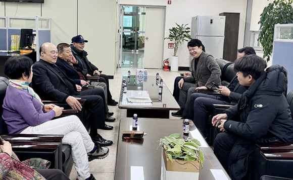 ÇÑÆí, 3.1Àý Àü³¯ÀÎ 29ÀÏ º¹ È帴 ¾Æ»ê½Ãº¸ÈÆ´ÜüÇùÀÇȸ »ç¹«¼Ò¸¦ ã¾Æ ÃÖ¿µ±æ ÇùÀÇȸÀå µî º¸ÈÆ´Üü ´ëÇ¥µé°ú °£´ãȸ¸¦ °®°í º¸ÈÆÁ¤Ã¥ ¹× Çö¾È¿¡ ´ëÇÑ À̾߱⸦ ³ª´³´Ù.
