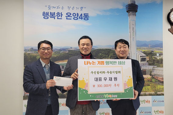 ¿ì½Å¼³ºñ°Ç¼³(ÁÖ)Àº ¸Å³â ¾Æ»ê½Ã Àü À¾¸éµ¿¿¡ ÈÄ¿ø±ÝÀ» Àü´ÞÇϰí, ¿Â¾ç4µ¿ ÁֹεéÀ» À§ÇØ ¹æÃൿ »ó°¡ °Å¸® ÁÖº¯ °¡·Îȯ°æ Á¤È µî¿¡ ¾ÕÀå¼´Â ¹Ù¸¥ ±â¾÷ÀÌ´Ù.
