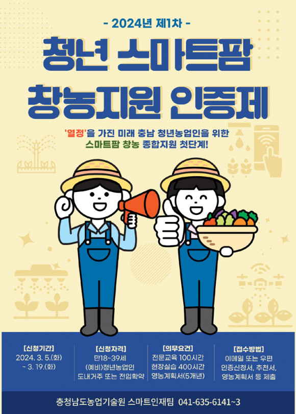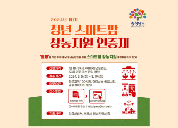 ¡®Ãæ³²Çü û³â ½º¸¶Æ®ÆÊ â³ó Áö¿ø ÀÎÁõÁ¦¡¯´Â ¿ª·®À» °®Ãá û³â ³ó¾÷ÀÎ À¯ÀÔ ¹× Á¤Âø È®´ë¸¦ À§ÇØ ½º¸¶Æ®ÆÊ °æ¿µ ´É·Â µîÀ» »çÀü °ËÁõÇÏ´Â Á¦µµ·Î ¿ÃÇØ óÀ½ ½ÃÇàÇÑ´Ù.
