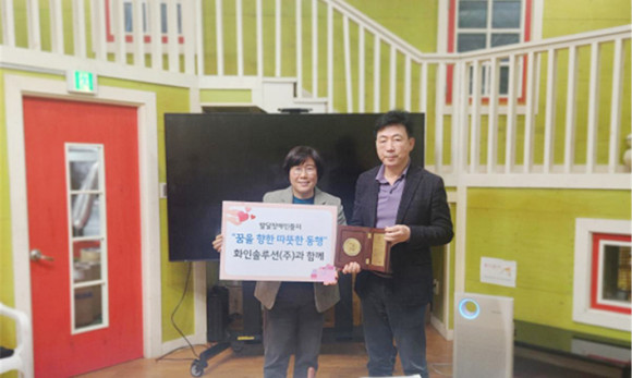 Áö¿ª»çȸ¿ÍÀÇ µ¿¹Ý¼ºÀåÀ» À§ÇØ ÈÀμַç¼Ç(ÁÖ)Àº ¿µÀθ鿡 À§Ä¡ÇÑ Àå¾ÖÀÎÁ÷¾÷ÀçȰ½Ã¼³ ¼º¸ð½Å³ª´ÂÀÏÅÍ(¿øÀå ÀÌ¿µ¹Ì) ¿¡ ÁßÁõÀå¾ÖÀεéÀÇ Áö¼Ó°¡´ÉÇÑ Á÷¾÷»ýȰÀ» Áö¿øÇϱâ À§ÇÑ ÈÄ¿øÀ» ÇϰíÀÖ´Ù.