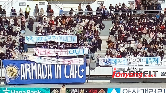 ÀÌ¿¡ ¡®¾Æ¸£¸¶´Ù¡¯ ÀÀ¿ø´ÜÀ» ºñ·ÔÇÑ Ãæ³²¾Æ»êFC ÆÒµéÀº ±¸´Ü°ú ÀÀ¿ø´Ü »ó¡»ö ´ë½Å »ó´ëÆÀ ºÎõFC¸¦ ´ëÇ¥ÇÏ´Â ¡®»¡°£»ö¡¯ À¯´ÏÆûÀ» ÀÔÀº »çÅ¿¡ ºÐ³ë¸¦ Ç¥½ÃÇß´Ù´Â Àü¾ðÀÌ´Ù.