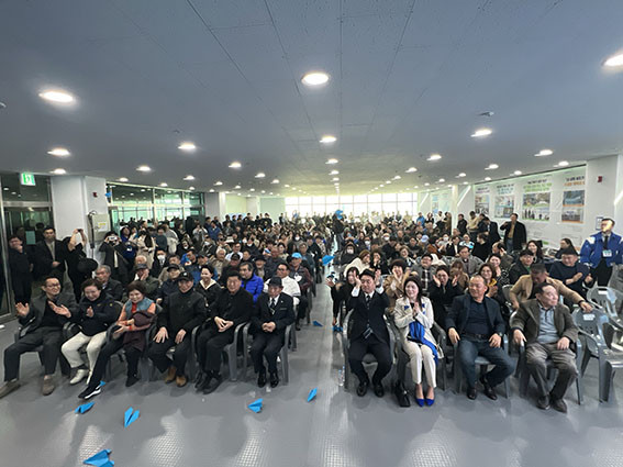 ° Èĺ¸ÀÇ ¿¬¼³ Áß°£Áß°£¸¶´Ù Âü¼®ÀÚµéÀº ° Èĺ¸ÀÇ À̸§À» ¿¬È£Çϸç Å« ¹Ú¼ö¸¦ º¸³Â´Ù. °³¼Ò½ÄÀº <´õ Å« ¾Æ»ê, Ãæ³²À» ³Ñ¾î ´ëÇѹα¹ÀÇ Áß½ÉÀÌ µÇ´Â ¾Æ»ê>À̶ó´Â ÁÖÁ¦·Î Âü¼®ÀÚ Àü¿øÀÌ 'Èñ¸ÁÀÇ Á¾À̺ñÇà±â'¸¦ ³¯¸®´Â ÆÛÆ÷¸Õ½º·Î ¼º´ëÇÏ°Ô ¸¶¹«¸®Çß´Ù.