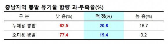 ºñ·á ½ÃºñÀÇ °æ¿ì, µµ³» »Í¹ç Åä¾çÀº ÀÛ¹° Àç¹è¿¡ ÀûÇÕÇÑ Åä¾çÈÇмº ±âÁغ¸´Ù À¯±â¹° ÇÔ·®ÀÌ ´ëºÎºÐ ºÎÁ·ÇØ(´©¿¡¿ë »Í¹ç 63%, ¿Àµð¿ë »Í¹ç 77%) ÈÇкñ·á ºñÁßÀ» ÁÙÀÌ°í ºÎ¼÷ÀÌ ÀßµÈ À¯±âÁú Åðºñ¸¦ ½ÃºñÇÏ´Â °ÍÀÌ Áß¿äÇÏ´Ù.