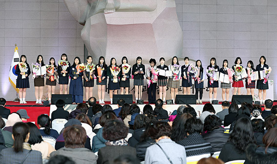 ±èÅÂÈì Áö»ç¿Í Çã¸í Çѱ¹¿©¼º´ÜüÇùÀÇȸÀå, ½Å¿µ¼÷ ¿©¼º°¡Á·ºÎ Â÷°ü, À¯°ü¼ø»óÀ§¿øÈ¸ À§¿ø, ¼ö»óÀÚ¿Í °¡Á·, °ü·Ã ´Üü µî 1õ¿© ¸íÀÌ Âü¼®ÇÑ °¡¿îµ¥ ¿¬ À̹ø Çà»ç´Â ¼ö»óÀÚ °øÀû ¼Ò°³, ½Ã»ó, ÃàÇϰø¿¬, ¹«±ÃÈ Àü´Þ ÆÛÆ÷¸Õ½º µîÀÇ ¼øÀ¸·Î ÁøÇàÇß´Ù.