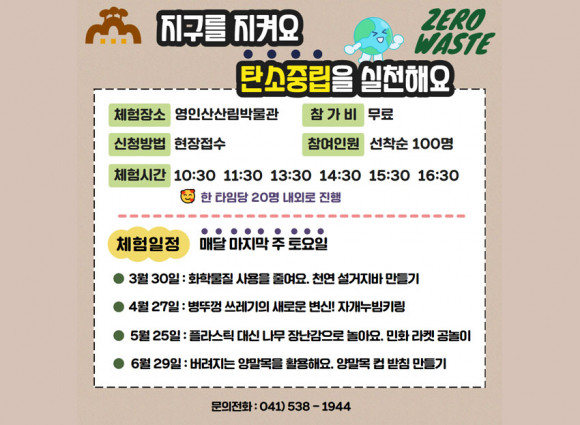 Àü³â°ú ¸¶Âù°¡Áö·Î ¿ÃÇØ ¿ª½Ã ȯ°æº¸È£¸¦ ½ÇõÇÒ ¼ö ÀÖ´Â ¡®Åº¼ÒÁ߸³¡¯À» ÁÖÁ¦·Î ÁøÇàµÈ´Ù. ÇÁ·Î±×·¥Àº 3¿ùºÎÅÍ 11¿ù±îÁö ¹«·á·Î ÁøÇàµÇ¸ç ÃÑ 100¸íÀ» ¼±Âø¼øÀ¸·Î ÇöÀåÁ¢¼ö ¹Þ´Â´Ù.