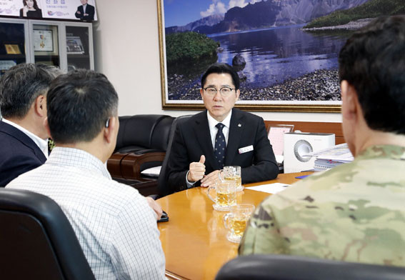 À̹ø °¨»çÆÐ ¼ö¿©´Â ¡®¼º¿õÀ̼ø½ÅÃàÁ¦¡¯¿¡ ÁÖÇѹ̱ºÀ» Àû±Ø ÃÊûÇÏ´Â µî Çѹ̵¿¸ÍÀ» °ø°íÈ÷ ÇϰíÀÚ ³ë·ÂÇÑ °ø·Î¸¦ ÀÎÁ¤¹Þ¾Æ ÀÌ·ïÁ³À¸¸ç, ¾Æ»ê½Ã¸¦ ¹æ¹®ÇÑ ¹Ì À°±º Á¦8±º »ç·ÉºÎ Á¤Ä¡±º»ç°í¹®ÀÎ ±èž÷ À屺À» ÅëÇØ Àü´ÞµÆ´Ù.