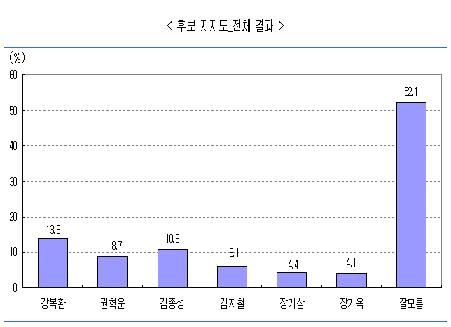 µµ¹Î ¾Ë±Ç¸® À§ÇØ ¿©·ÐÁ¶»ç ´õÇÇÇÿ¡ ÀÇ·Ú Ãæ³²Áö¿ª½Å¹®Çùȸ°¡ ¿À´Â 4¿ù 29ÀÏ¿¡ Ä¡·¯Áú Ãæ³²µµ±³À°°¨ º¸±È¼±°Å¿Í °ü·ÃÇØ ¿©·ÐÁ¶»ç Àü¹®±â°üÀÎ ´õÇÇÇÃ(www.thepeople.co.kr)¿¡ ÀÇ·ÚÇØ Áö³ 3¿ù 2ÀϺÎÅÍ 3ÀϱîÁö ¾çÀϰ£ ¿©·ÐÁ¶»ç¸¦ ½Ç½ÃÇÑ °á°ú °º¹È¯ È帰¡ ¿ì¼¼ÇÑ °ÍÀ¸·Î ³ªÅ¸³µ´Ù. Ãæ³²µµ±³À°°¨ º¸±È¼±°Å ¿©·ÐÁ¶»ç´Â Ãæ³²µµ 19¼¼ÀÌ»ó °ÅÁÖÀÚ¸¦ ´ë»óÀ¸·Î ARSÀüÈ ¿©·ÐÁ¶»ç ¹æ¹ýÀ¸·Î ÁøÇàµÆÀ¸¸ç, Ç¥º»Å©±â´Â 1õ216¸í, Ç¥º»¿ÀÂ÷´Â ½Å·Ú±¸°£ 95%¡¾2.8%pÀ̰í, ÀÀ´ä·üÀº 3.19%ÀÌ´Ù. Ç¥º»ÀÇ ¿¬·ÉºÐÆ÷µµ´Â 20´ë 16.9%, 30´ë 19.1%, 40´ë 21.3%, 50´ë 16.0%, 60´ë 26.7%À̰í, ¼ºº°ºÐÆ÷µµ´Â ³²¼ºÀÌ 51.4%, ¿©¼ºÀÌ 48.6%·Î ³ªÅ¸³µ´Ù. ¡ãÅõÇ¥Âü¿© ¿©ºÎ¸¦ ¹¯´Â ¼³¹®¿¡¼´Â ¡®¹Ýµå½Ã ÅõÇ¥ÇÑ´Ù¡¯¿¡ 35.0%, ¡®°¡±ÞÀû ÅõÇ¥ÇÑ´Ù¡¯¿¡ 31.3%·Î ÀÀ´äÇØ À̹ø ¼±°Å¿¡ ¸¹Àº °ü½ÉÀÌ ÁýÁߵǰí ÀÖÀ½À» ³ªÅ¸³Â´Ù. ¡ãÈĺ¸ ÁöÁöµµ Àüü °á°ú¿¡´Â °º¹È¯ 13.8%, ±ÇÇõ¿î 8.7%, ±èÁ¾¼º 10.8%, ±èÁöö 6.1%, Àå±â»ó 4.4%, Àå±â¿Á 4.1%, À߸𸧠52.1%À¸·Î ³ªÅ¸³Â´Ù. ¿¬·Éº°·Î´Â 20´ë¿¡¼ ±èÁ¾¼º(15.5%)-°º¹È¯(14.6%), 30´ë¿¡¼ °º¹È¯(12.5%)-±ÇÇõ¿î(9.5%), 40´ë¿¡¼ °º¹È¯(14.3%)-±ÇÇõ¿î(9.3%), 50´ë¿¡¼ °º¹È¯(13.4%)-±èÁ¾¼º(9.8%), 60´ë À̻󿡼 °º¹È¯(14.2%)-±èÁ¾¼º(13.2%) µîÀÌ °æÀïÀ» ¹úÀ̰í ÀÖ´Ù. ¡ãÃæ³² Áö¿ª ÇлýµéÀÇ ½Ç·ÂÇâ»óÀ» ½Ãų ¼ö ÀÖ´Â Èĺ¸¿¡ ´ëÇÑ Àüü °á°ú¿¡´Â °º¹È¯ 17.4%, ±ÇÇõ¿î 8.6%, ±èÁ¾¼º 12.3%, ±èÁöö 7.3%, Àå±â»ó 5.8%, Àå±â¿Á 4.8%, À߸𸧠43.7%À¸·Î Áý°èµÆ´Ù. ¡ãÃæ³²±³À°À» ¹ßÀü½Ãų ¼ö ÀÖ´Â Èĺ¸¿¡ ´ëÇØ¼´Â °º¹È¯ 17.8%, ±ÇÇõ¿î 9.5%, ±èÁ¾¼º11.8%, ±èÁöö 6.6%, Àå±â»ó 5.4%, Àå±â¿Á 5.3%, À߸𸧠43.7%·Î ³ªÅ¸³µ´Ù. ¸¶Áö¸·À¸·Î ¡ãÃæ³² µµ±³À°°¨ Èĺ¸¿¡ ´ëÇÑ ¼ºº° ÁöÁöµµ´Â °º¹È¯ 16.2%(³²) 11.3%(¿©), ±ÇÇõ¿î 8.3%(³²) 9.1%(¿©), ±èÁ¾¼º 11.7%(³²) 9.8%(¿©), ±èÁöö 5.1%(³²) 7.1%(¿©), Àå±â»ó 4.0%(³²) 4.9%(¿©), Àå±â¿Á 5.4%(³²) 2.7%(¿©), À߸𸧠49.3%(³²) 55.0%(¿©) µîÀ¸·Î ³ªÅ¸³µ´Ù. À̿ܿ¡ Âü°íÀÚ·á·Î¼ Åë°èÀû Àǹ̴ ¾øÀ¸³ª °ü½ÉÀÌ ¸¹ÀÌ °¡´Â ¡ãÁö¿ªº° 1À§ È帷δ °è·æ½Ã ±èÁ¾¼º(29.2%), °øÁֽà ±èÁ¾¼º(16.0%), ±Ý»ê±º °º¹È¯¡¤±èÁ¾¼º(14.6%), ³í»ê½Ã °º¹È¯(15.9%), ´çÁø±º °º¹È¯(16.7%), º¸·É½Ã °º¹È¯(18.6%), ºÎ¿©±º °º¹È¯(12.7%), ¼»ê½Ã Àå±â¿Á(16.7%), ¼Ãµ±º °º¹È¯(17.2%), ¾Æ»ê½Ã °º¹È¯(17.5%), ¿¬±â±º ±èÁ¾¼º(27.8%), ¿¹»ê±º °º¹È¯(26.7%), õ¾È½Ã ±ÇÇõ¿î(15.6%), û¾ç±º ÀÚÀÌ»ó(30.0%), žȱº °º¹È¯(20.7%), È«¼º±º ±èÁ¾¼º(15.9%) µîÀ¸·Î ³ªÅ¸³µ´Ù. <´ëÀü ÀÌÁ¾¼ø ±âÀÚ>