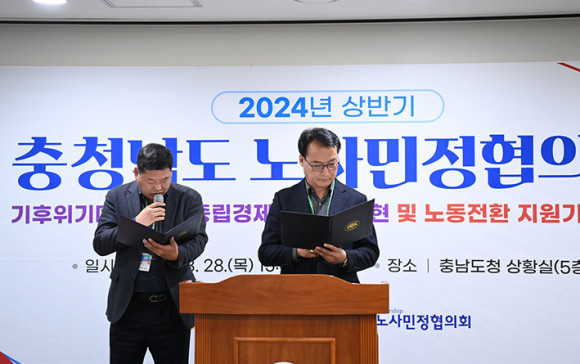 Ãæ³² ³ë»ç¹ÎÁ¤ÇùÀÇȸ°¡ ¡®Åº¼ÒÁ߸³°æÁ¦Æ¯º°µµ ½ÇÇö ¹× ³ëµ¿Àüȯ Áö¿ø±â¹Ý ¸¶·Ã¡¯À» °ñÀÚ·Î ÇÏ´Â °øµ¿¼±¾ð¹®À» ¹ßÇ¥Çß´Ù.