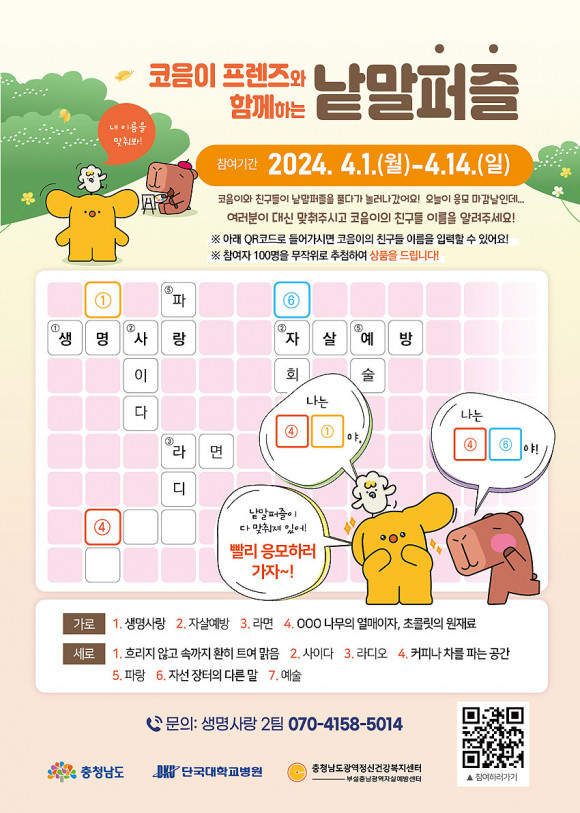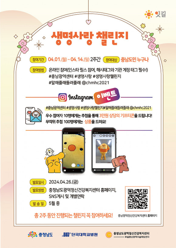 À̹ø ÁýÁß Ä·ÆäÀÎ ±â°£¿¡´Â µµ¹Î ´©±¸³ª Âü¿©ÇÒ ¼ö ÀÖ´Â »ý¸í»ç¶û ÃãÀ» µû¶ó Ãß´Â »ý¸í»ç¶û 縰Áö À̺¥Æ®, ³¹¸»ÆÛÁñÀ» Ç®¾î Ãæ³² Á¤½Å°Ç° ij¸¯ÅÍ ¡®ÄÚÀ½ÀÌ¡¯¿Í Ä£±¸µéÀÇ À̸§À» ¸ÂÃß´Â ³¹¸»ÆÛÁñ À̺¥Æ® µîÀ» ÃßÁøÇÑ´Ù.