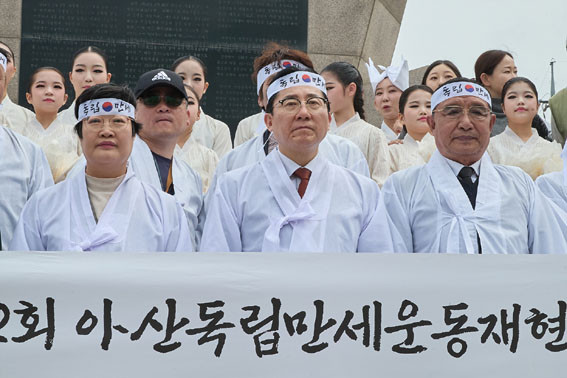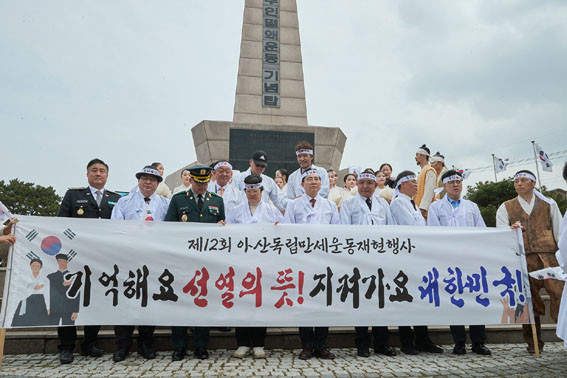 Âü¼®ÀÚµéÀº ³ª¶óÀÇ µ¶¸³°ú ±¹±Ç ȸº¹À» À§ÇØ Èñ»ýÇϽŠ¾Æ»êÁö¿ª ¹ÎÁ· ¼±¿ÀÇ °í±ÍÇÑ Á¤½ÅÀ» ±â¸®´Â Ãß¸ð °ø¿¬À» °ü¶÷ÇÑ µÚ, Çå½Ã¿Í µ¶¸³¼±¾ð¼ ³¶µ¶À» µé¾ú´Ù.