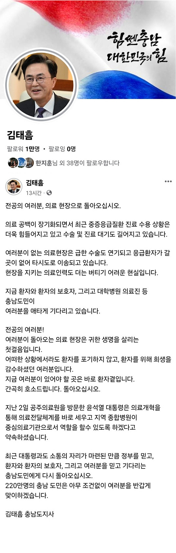 ÀÇ´ë Áõ¿ø ¹®Á¦·Î Àü°øÀÇ ÀÌÅ»ÀÌ Àå±âÈ µÇ°í ÀÖ´Â °¡¿îµ¥, ±èÅÂÈì Ãæ³²µµÁö»ç°¡ Àü°øÀÇ¿¡ ´ëÇÑ ÀÇ·á ÇöÀå º¹±Í¸¦ È£¼ÒÇÏ°í ³ª¼¹´Ù.
