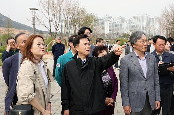 ÀÌ ÀÚ¸®¿¡¼ ±è Áö»ç´Â ¡°µµ´Â µµ¹Î Âü¿© ½£À» Åä´ë·Î È«¿¹°ø¿øÀ» ¼¼°èÀûÀÎ ¸íǰ°ø¿øÀ¸·Î ¸¸µé °Í¡±À̶ó¸ç ¡°¿ëºÀ»ê°ú ¼ö¾Ï»ê, µµÃ»»ç±îÁö ¿¬°áÇØ È®ÀåÇÏ°í ¹Ì¼ú°ü, ¿¹¼úÀÇÀü´ç, ŰÁîÆÄÅ© µî ´Ù¾çÇÑ ¹®È½Ã¼³À» ä¿ö ³»Æ÷ÀÇ Á¤ÁÖ ¿©°ÇÀ» ³ôÀ̰í Àα¸ 10¸¸ÀÇ »ì±â ÁÁÀº ³»Æ÷½Åµµ½Ã¸¦ ¿Ï¼ºÇÒ °Í¡±À̶ó°í °Á¶Çß´Ù.