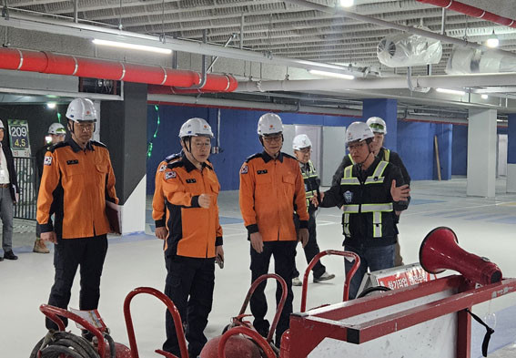 ±ÇÇõ¹Î Ãæ³²¼Ò¹æº»ºÎÀå(¿À¸¥ÂÊ¿¡¼­ ³×¹øÂ°)Àº 11ÀÏ º½Ã¶ È­À翹¹æÀ» À§ÇØ ´çÁø½Ã ¼öûµ¿ ¼ÒÀç ´ëÇü °ø»çÇöÀåÀ» ¹æ¹®ÇØ È­Àç¿äÀÎÀ» Á¡°ËÇß´Ù.