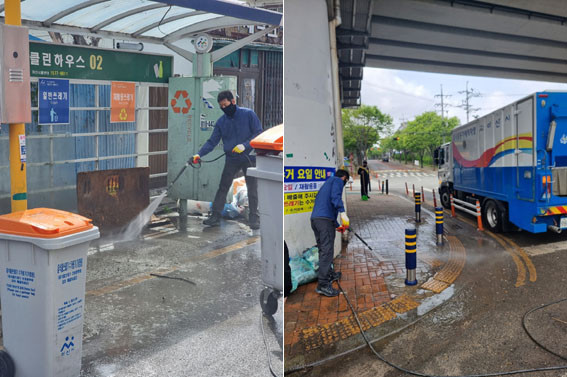 ¾²·¹±â ¹èÃâ Àå¼Ò¿¡ ¼³Ä¡µÈ »óÂ÷¿ë±â´Â °èÀýÀû ¿µÇâ°ú ¾²·¹±â ¹èÃâÀÌ ¹Ýº¹µÇ¸é¼ ¾ÇÃ볪 ÇØÃæ ¹ß»ý µîÀÇ ¹®Á¦°¡ ¹ß»ýÇϴµ¥, ¾Æ»ê½Ã´Â ¼¼Ã´ Â÷·® 2´ë¸¦ ´ëÇà¾÷ü¿¡ Áö¿øÇØ ¾ÇÃëÁ¦°Å¿Í û°áÀ» À¯ÁöÇϰí ÀÖ´Ù.
