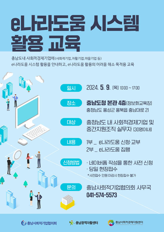 Ãæ³²»çȸÀû°æÁ¦Áö¿ø¼¾ÅÍ(¼¾ÅÍÀå ÀÌ»ó¿µ)(ÀÌÇÏ ¡®¼¾ÅÍ¡¯)´Â ¿À´Â 5¿ù 9ÀÏ ¿ÀÀü 10½ÃºÎÅÍ ÃæÃ»³²µµÃ» º»°ü 4Ãþ Á¤º¸È±³À°Àå¿¡¼ ¡®e³ª¶óµµ¿ò ½Ã½ºÅÛ È°¿ë ±³À°¡¯À» ½Ç½ÃÇÑ´Ù°í ¹àÇû´Ù.