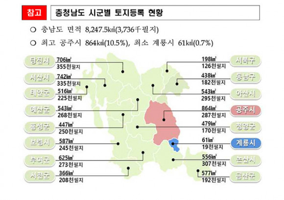 Ãæ³²µµ ³» °¡Àå ÅäÁö ¸éÀûÀÌ ³ÐÀº ½Ã±ºÀº °øÁÖ½Ã, °¡Àå ÀÛÀº ½Ã±ºÀº °è·æ½ÃÀÎ °ÍÀ¸·Î ³ªÅ¸³µ´Ù.