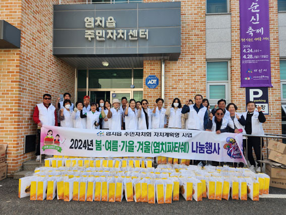 ÀÌ Çà»ç´Â 2024³â ¿°Ä¡À¾ ÁÖ¹ÎÀÚġȸ ÀÚÄ¡°èȹÇü »ç¾÷À¸·Î, À§¿øµéÀº ¿°Ä¡À¾ Ư»ê¹° µþ±â·Î ³ó»ê¹°°¡°ø¼¾ÅÍ¿¡¼ µþ±âÀëÀ» ¸¸µé¾î »§°ú ÇÔ²² 31°³¸¶À» 310°¡±¸ µ¶°Å³ëÀÎ ¹× ¼Ò¿Ü°èÃþ Áֹο¡°Ô Àü´ÞÇß´Ù.