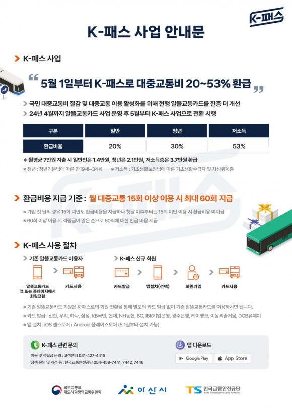 ¾Æ»ê½Ã, 5¿ùºÎÅÍ ´ëÁß±³Åëºñ ȯ±Þ ¡®K-ÆÐ½º¡¯ µµÀÔ