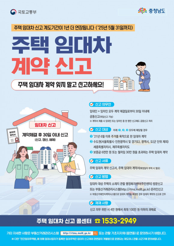 Ãæ³²µµ´Â ¿ÃÇØ 5¿ù 31ÀϱîÁö ½ÃÇà ¿¹Á¤À̾ú´ø ¡®ÁÖÅà ÀÓ´ëÂ÷ °è¾à ½Å°íÁ¦¡¯ °èµµ±â°£À» ³»³â 5¿ù 31ÀϱîÁö 1³â Ãß°¡ ¿¬ÀåÇÑ´Ù°í 4¿ù 25ÀÏ ¹àÇû´Ù.