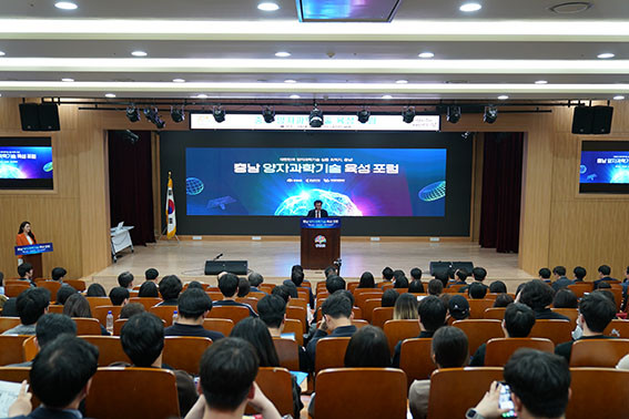 ÁÖÁ¦¹ßÇ¥¿¡¼´Â ÀÌ¿íÀç °øÁÖ´ë ±³¼ö°¡ Ãæ³² Áß½ÉÀÇ ¾çÀÚÇõ½Å»ýÅÂ°è ±¸Ãà ¹æÇâÀ» ÁÖÁ¦·Î ¡°Ãæ³² Ư¼º¿¡ ¸Â´Â ¾çÀÚ»ê¾÷ »ýŰ踦 Á¶¼ºÇϱâ À§ÇØ ¾çÀÚ±â¼ú°ú »ê¡¤ÇС¤¿¬ÀÌ À¶ÇÕÇÒ ¼ö ÀÖ´Â °ü·Ã ÀÎÇÁ¶ó ±¸Ãà°ú ÀÎÀç ¾ç¼º¿¡ Èû½á¾ß ÇÑ´Ù¡±°í Á¶¾ðÇß´Ù.