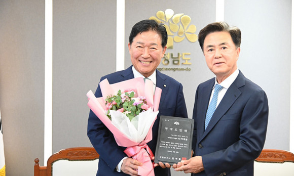 ±èÅÂÈì Áö»ç´Â À̳¯ µµÃ» Á¢°ß½Ç¿¡¼ ¹ÚÁ¾¹ü ȸÀå¿¡°Ô ¸í¿¹µµ¹ÎÁõ ¹× ¸í¿¹µµ¹ÎÆÐ¸¦ ¼ö¿©Çϰí, Á¦25Â÷ ¼¼°è´ëÇ¥ÀÚ´ëȸ ¹× ¼öÃâ»ó´ãȸÀÇ ¼º°ø°³ÃÖ¸¦ À§ÇØ Àû±Ø ¼º¿øÇØ ÁØ °Í¿¡ ´ëÇÑ °¨»çÀÇ ¶æÀ» ÀüÇß´Ù.