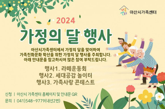¾Æ»ê½Ã°¡Á·¼¾ÅÍ¿¡¼ ÁøÇàÇÏ´Â °¡Á¤ÀÇ ´Þ Çà»ç¿¡ Âü¿©ÇÏ°í ½Í´Ù¸é, ¾Æ»ê½Ã°¡Á·¼¾ÅÍ È¨ÆäÀÌÁö¿¡¼ ½Åû(¿îµ¿È¸)Çϰųª, Çà»ç ´çÀÏ ÇöÀå ¹æ¹®ÇÏ¸é µÈ´Ù.