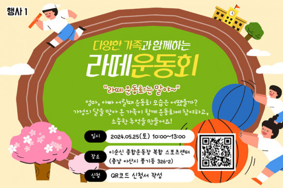 25ÀÏ 10½Ã ¾Æ»ê½Ã º¹ÇÕ½ºÆ÷Ã÷¼¾ÅÍ¿¡¼ ÁøÇàµÇ´Â ¡®¶ó¶¼ ¿îµ¿È¸¡¯´Â °¡Á·ÀÌ ÇÔ²²ÇÏ´Â ½ÅüȰµ¿À» ÅëÇØ °¡Á·°£ÀÇ Ä£¹Ð°¨À» ³ôÀÌ°í °¡Á·°ú »õ·Î¿î Ãß¾ïÀ» ¸¸µé ¼ö ÀÖ´Â Çà»ç·Î ÁغñÇϰí ÀÖÀ¸¸ç, °°Àº ½Ã°£ À̼ø½ÅÁ¾ÇտÀå ¾Õ ±¤Àå¿¡¼´Â ¡®¸ðµç °¡Á·ÀÇ ¼¼´ë°ø°¨ ³îÀÌÅÍ¡¯°¡ ÁøÇàµÈ´Ù.