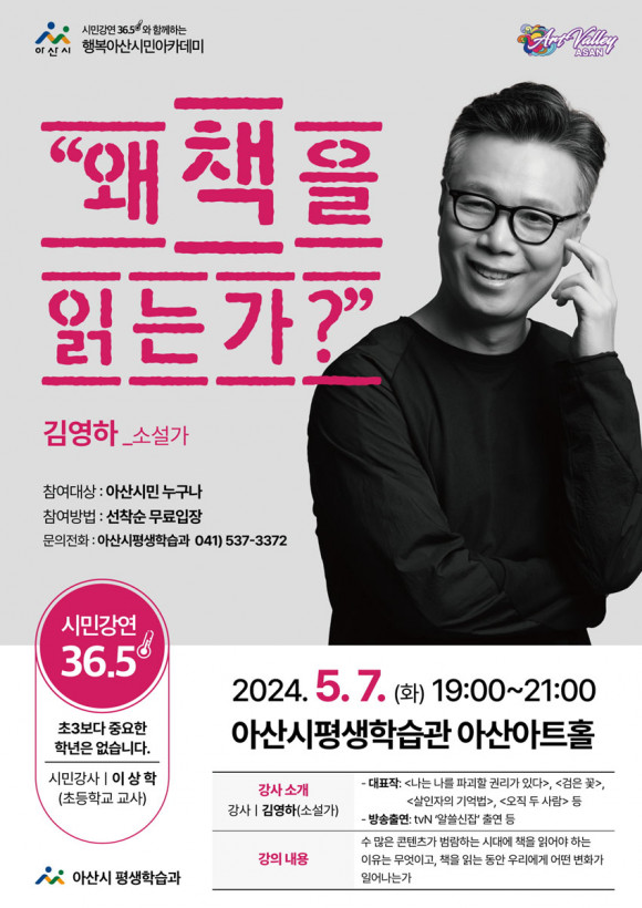 ¾Æ»ê½Ã(½ÃÀå ¹Ú°æ±Í)´Â ¿À´Â 5¿ù 7ÀÏ ¿ÀÈÄ 7½Ã ¾Æ»ê½ÃÆò»ýÇнÀ°ü ¾Æ»ê¾ÆÆ®È¦¿¡¼ ±è¿µÇÏ ÀÛ°¡¸¦ ÃÊÃ»ÇØ Çູ¾Æ»ê ½Ã¹Î¾ÆÄ«µ¥¹Ì¸¦ °³ÃÖÇÑ´Ù.