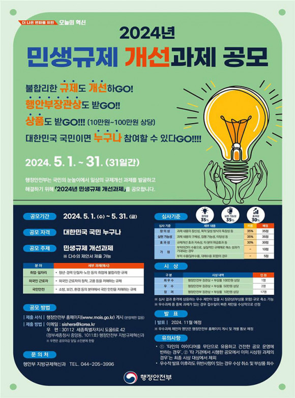 Ãæ³²µµ´Â ÇàÁ¤¾ÈÀüºÎ¿Í ÇÔ²² ÀÏ»ó»ýȰ ¼Ó °¢Á¾ ºÒÇÕ¸®ÇÑ ±ÔÁ¦¸¦ °³¼±Çϱâ À§ÇÑ ¡®2024 ¹Î»ý±ÔÁ¦ °³¼±°úÁ¦ °ø¸ð¡¯¸¦ ½Ç½ÃÇÑ´Ù°í 6ÀÏ ¹àÇû´Ù.