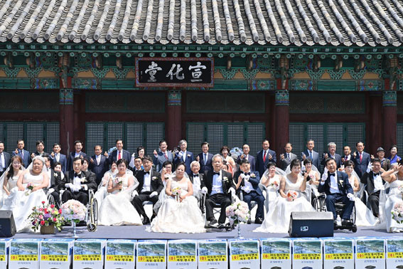24ȸ°¸¦ ¸ÂÀº ¿ÃÇØ Àå¾ÖÀÎ ÇÕµ¿ °áÈ¥½ÄÀº ¾î·Á¿î ȯ°æ µîÀ¸·Î °áÈ¥½ÄÀ» ¿Ã¸®Áö ¸øÇÑ 20¡¤30´ë ÃÖ¿¬¼Ò ºÎºÎºÎÅÍ 80´ë ÃÖ°í·É ºÎºÎ±îÁö ÃÑ 39½ÖÀ» ¼±Á¤ÇØ ÁøÇàÇß´Ù.