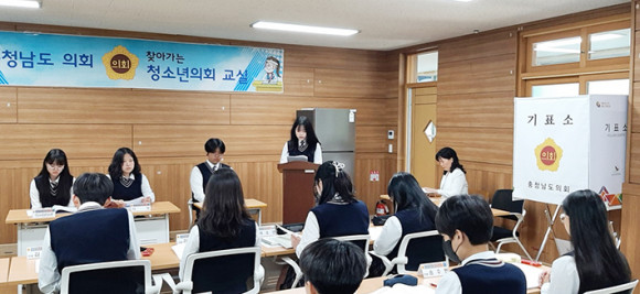 À̳¯ õ¾È ºÎ¼ºÁß ÇлýµéÀº ÀÇÀå ¼±°Å¿¡ Ã⸶ÇÑ ÇлýµéÀÇ Á¤°ß ¹ßÇ¥¸¦ µéÀº ÈÄ ÅõÇ¥¸¦ ÅëÇØ ÀÇÀåÀ» ¼±ÃâÇϰí, µµÀÇ¿ø ¿ªÇÒÀ» °æÇèÇϸç ÁֹδëÇ¥ÀÇ Á߿伺À» üÇèÇß´Ù.