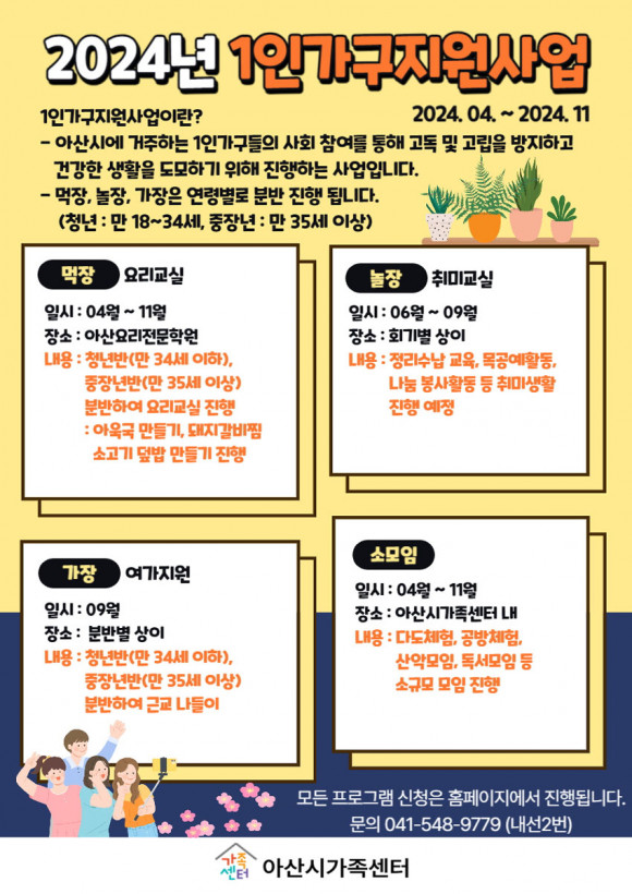 ÇÑÆí, ¿©¼º ¹× û¡¤Àå³âÃþ ´ë»óÀ¸·Î ÁøÇàÇÏ´Â 1Àΰ¡±¸Áö¿ø ÇÁ·Î±×·¥ÀÇ ÀÚ¼¼ÇÑ ½Åû ¹æ¹ýÀº ¾Æ»ê½Ã°¡Á·¼¾ÅÍ·Î ¹®ÀÇ(041-548-9772/³»¼±¹øÈ£ 2¹ø)ÇÏ¸é µÈ´Ù.