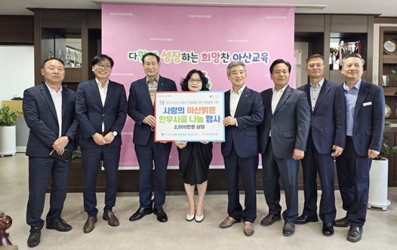 (»ç)³ª´®Ãà»ê¿îµ¿º»ºÎ Ãæ³²µµÁöºÎ(ÁöºÎÀå À±°æ±¸¡¤¿¹»êÃàÇù Á¶ÇÕÀå)¡¤¾Æ»êÃà»ê³óÇù(Á¶ÇÕÀå ÃµÇØ¼ö)Àº 4ÀÏ ¾Æ»ê±³À°Áö¿øÃ»(±³À°Àå ¹Ú¼¿ì)¿¡ ¿ì¸® ¾Æ»êÀÇ ¹Ì·¡ÀÎ ÇлýµéÀ» À§ÇÏ¿© 2000¸¸¿ø »ó´çÀÇ ÇÑ¿ì»ç°ñÀ» ÈÄ¿øÇß´Ù.