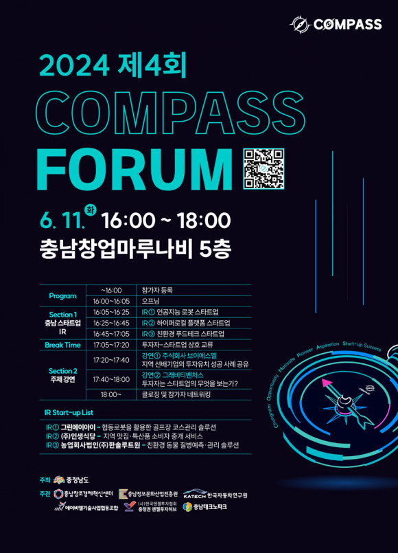 ¡®ÄÄÆÛ½º Æ÷·³(COMPASS Forum)¡¯Àº Ãæ³² ¿£Á© ¹× º¥Ã³ÅõÀÚ »ýŰè Ȱ¼ºÈ¸¦ À§ÇØ ÃæÃ»³²µµ¿Í Ãæ³² °ø°ø¡¤¹Î°£°ú ÇÔ²² ¸Å¿ù ¼Â° ÁÖ È¿äÀÏ¿¡ °³ÃÖÇϰí ÀÖ´Â Çà»ç·Î â¾÷ÀÚÀÇ ³ªÄ§¹Ý(Compass)ÀÌ µÇ¾î â¾÷ ¼º°øÀÇ ±æÀ» ãµµ·Ï µµ¿ÍÁÖ´Â Ãæ³² ³×Æ®¿öÅ© Ç÷§ÆûÀ¸·Î ÀÚ¸®¸Å±èÇϰí ÀÖ´Ù.