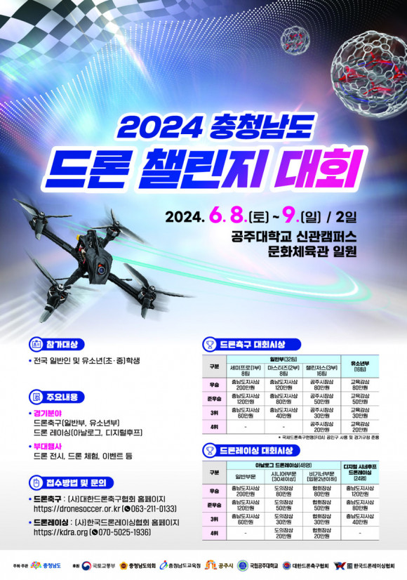Ãæ³²µµ´Â ¿À´Â 6¿ù 8¡9ÀÏ ±¹¸³°øÁÖ´ë ¹®ÈüÀ°°ü ¹× Àܵð±¤Àå ÀÏ¿ø¿¡¼ ¡®2024 ÃæÃ»³²µµ µå·Ð 縰Áö(Challenge) ´ëȸ¡¯¸¦ °³ÃÖÇÑ´Ù°í 6ÀÏ ¹àÇû´Ù.