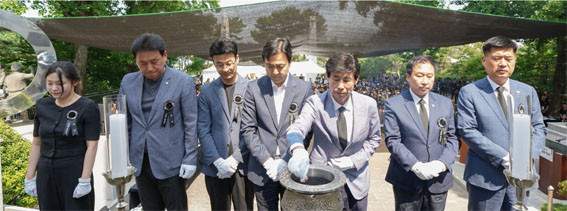 Çà»ç¿¡ Âü¼®ÇÑ ½ÃÀÇ¿øµéÀº ³ª¶ó¿Í ¹ÎÁ·À» À§ÇØ Çå½ÅÇÑ ¼±¿µéÀ» Ã߸ðÇÏ´Â ½Ã°£À» °®°í ÇöÃæÀÏÀÇ Àǹ̸¦ µÇ»õ±â¸ç ¡°¼ø±¹¼±¿µéÀÇ ¶æÀ» ¹Þµé¾î ¾Æ»ê½ÃÀÇȸ´Â ¾ÕÀ¸·Îµµ Áö¿ª ¹ßÀü°ú ½Ã¹Î ÇູÀ» À§ÇØ ÃÖ¼±À» ´ÙÇϰڴ١±¶ó°í ¹àÇû´Ù.